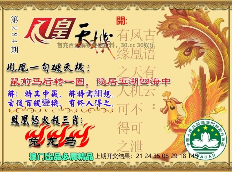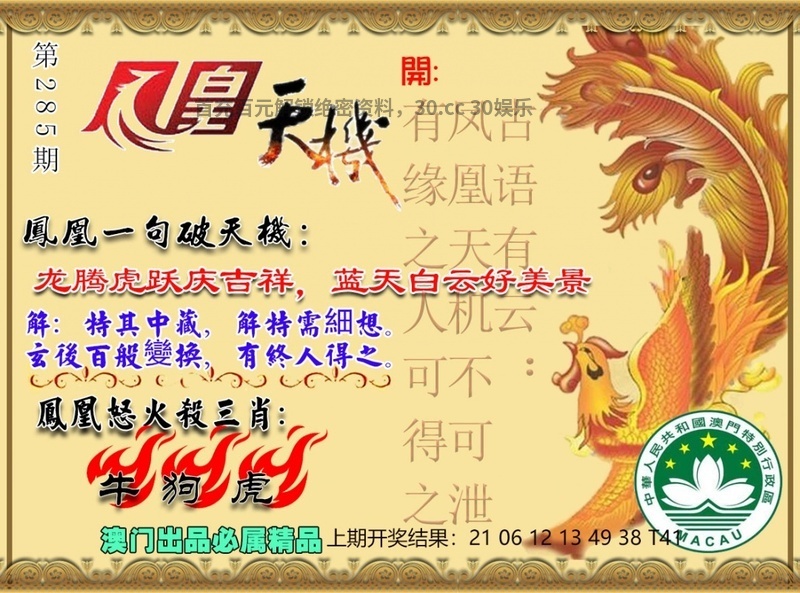 286期:凤凰一句破天机:喜传佳凤西阳红,生龙活虎四时发 |